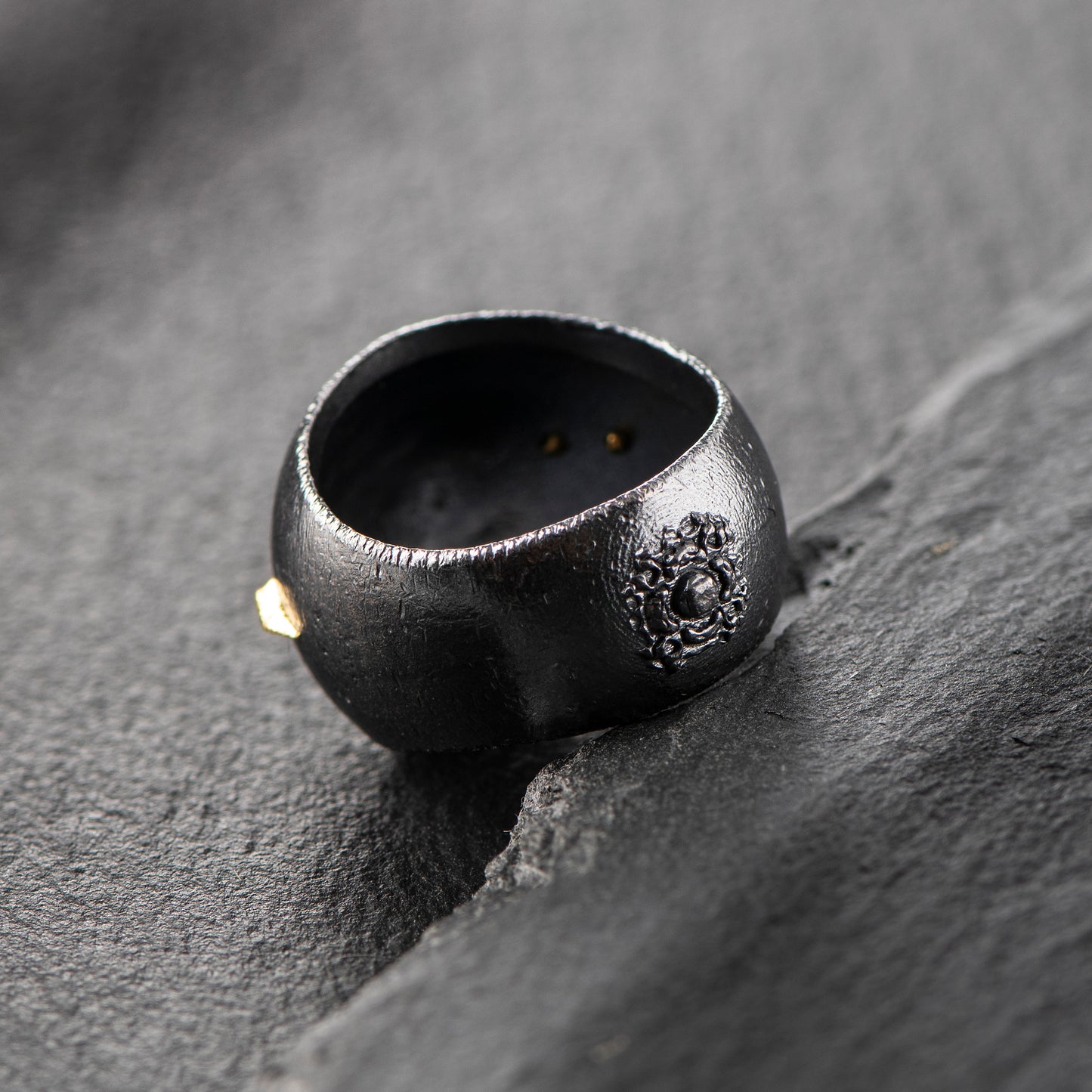 Harmony and Synchronicity. Simplified version. Pure Silver (999.9) with 24ct gold details for energetic enhancement. Ring by Constantinos Kyriacou